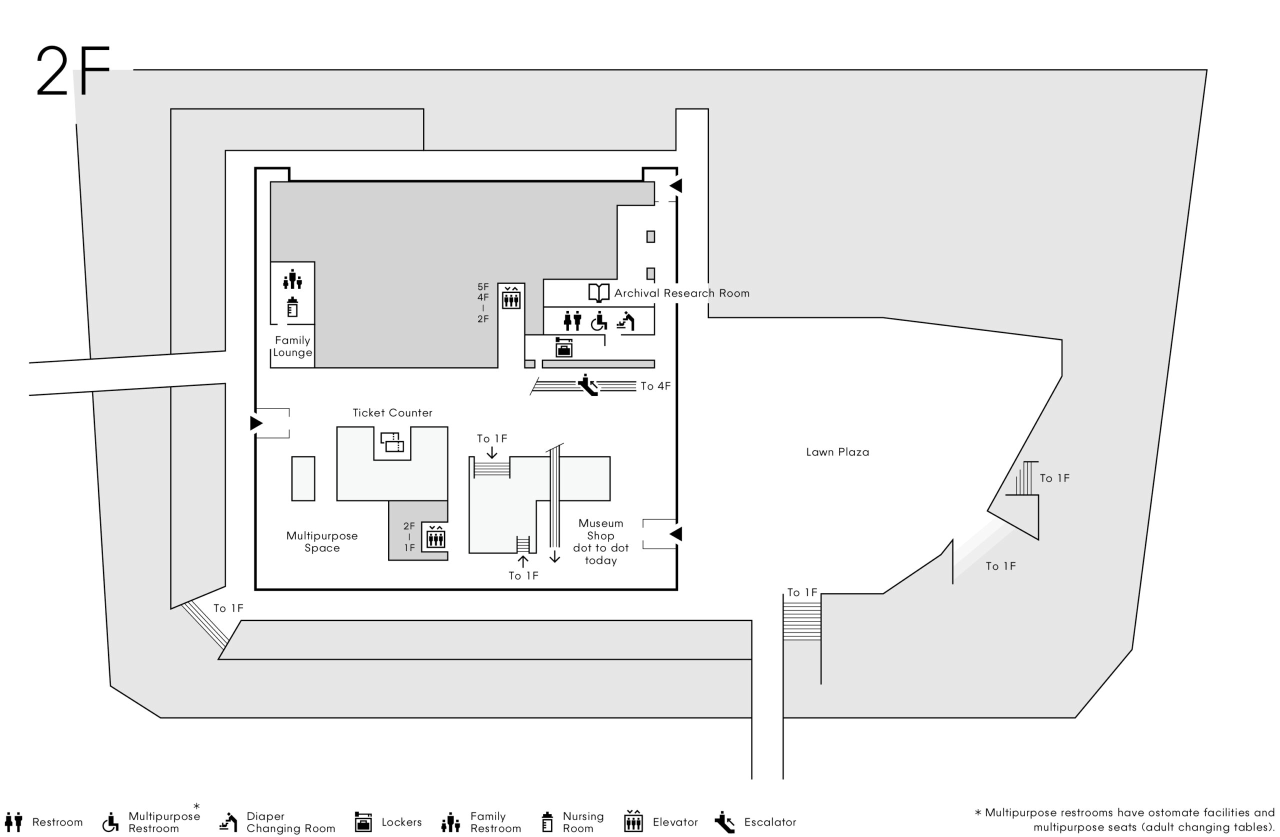 | 2F | Ticket counter, family rest area, Archival Research Room, and lawn plaza (outdoors) |
