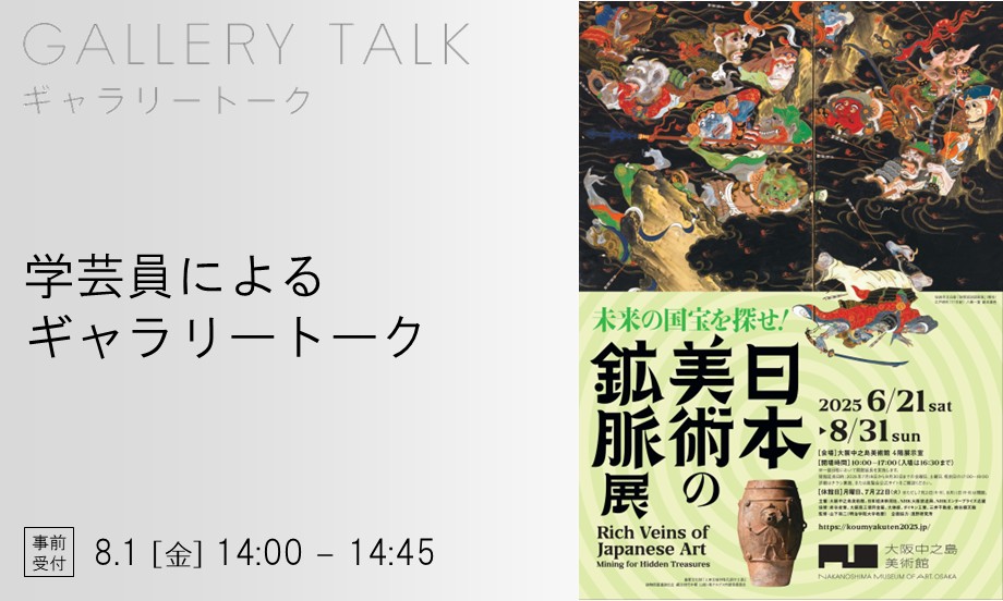 | 参加費 | 無料 *当日、「日本美術の鉱脈展 未来の国宝を探せ!」の展示室にご入場いただくための観覧券をご持参ください。 |