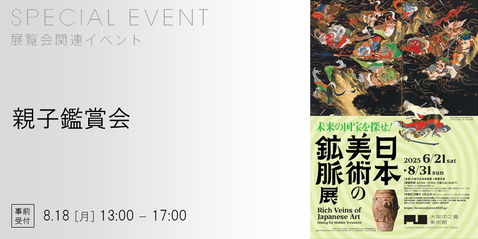 | 参加費 | 無料 *小学生以上の方のご入場には、当日ご利用になられる観覧券が必要です。 当日、「日本美術の鉱脈展 未来の国宝を探せ!」の展示室にご入場いただくための観覧券をご持参ください。 |