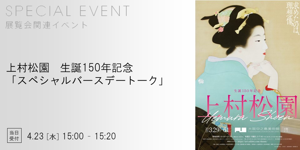 | 参加費 | 無料*当日、「生誕150年記念 上村松園」の展示室にご入場いただくための観覧券をご持参ください。 |