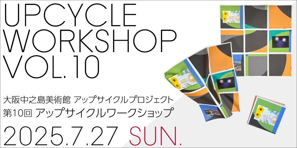 今回の素材は、昨年度開催の展覧会「TRIO パリ・東京・大阪 モダンアート・コレクション」の垂れ幕です。参加者の手によって、役割を終えた巨大な垂れ幕が、「広がる!フォトフレーム」に生まれ変わります。夏休みの思い出とともに飾ってお楽しみください。