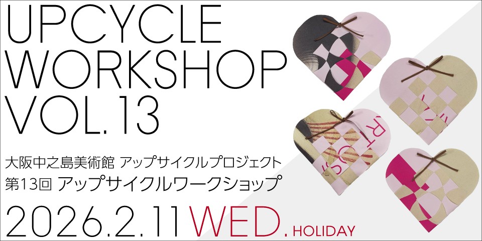 今回の素材は、昨年開催の展覧会「生誕150年記念 上村松園」の垂れ幕です。参加者の手によって、役割を終えた巨大な垂れ幕が、「ハートラッピングポーチ」に生まれ変わります。バレンタインの思い出とともにお楽しみください。