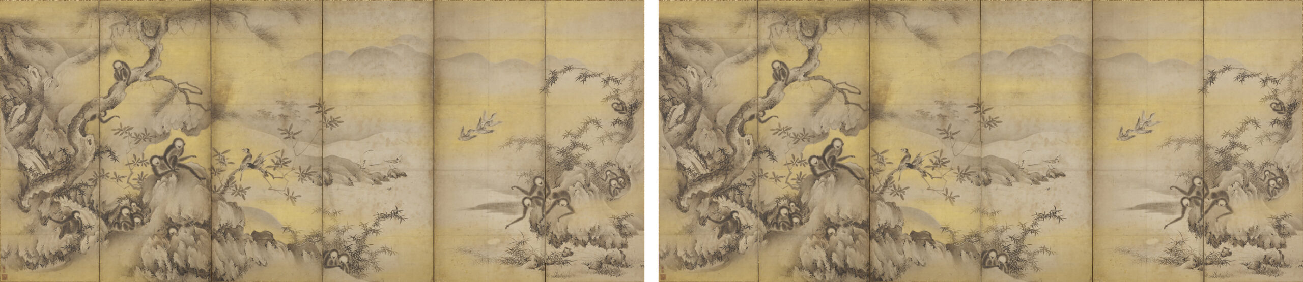 重要文化財 式部輝忠《巖樹遊猿図屏風》