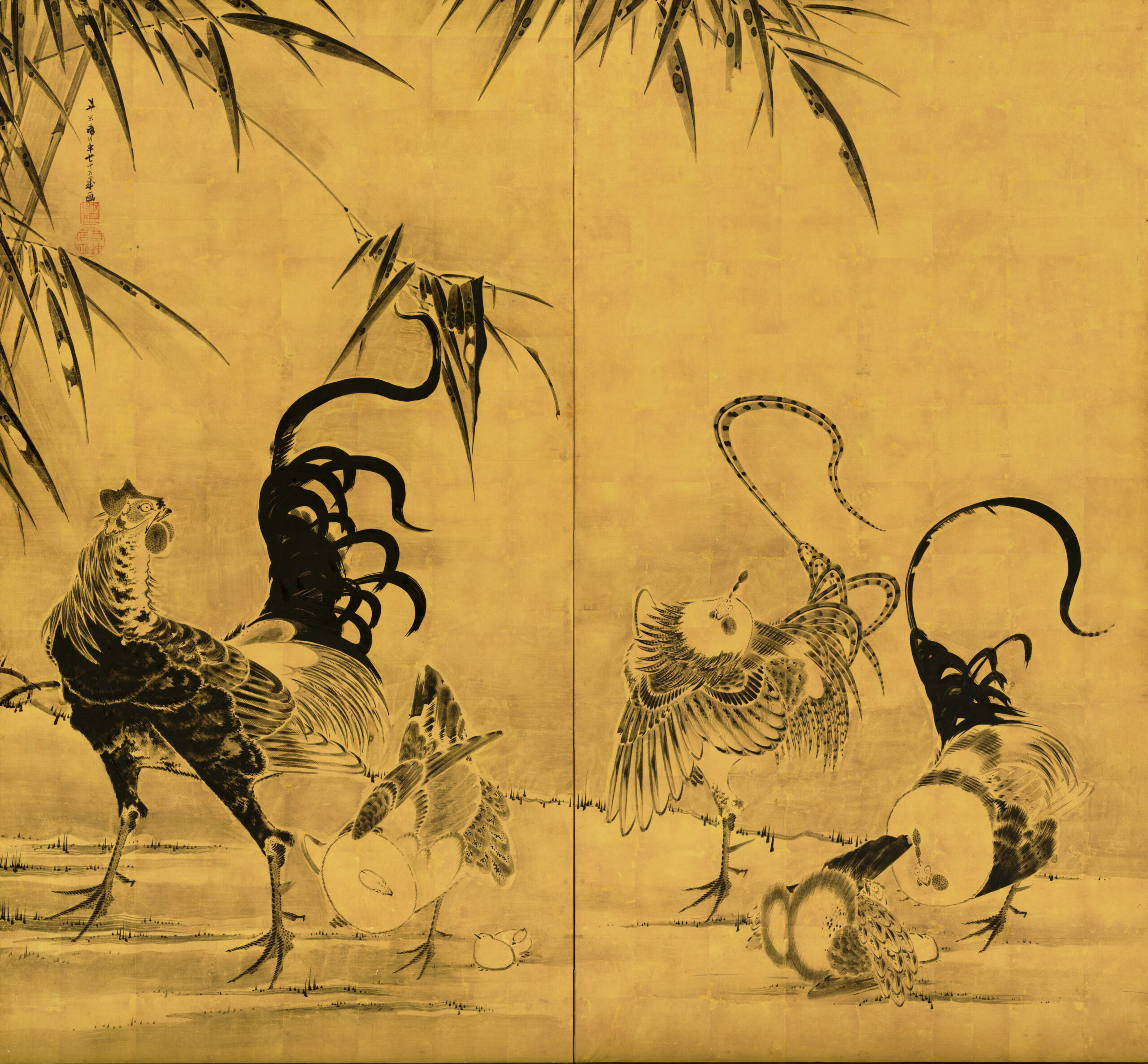 伊藤若冲《竹鶏図屏風》