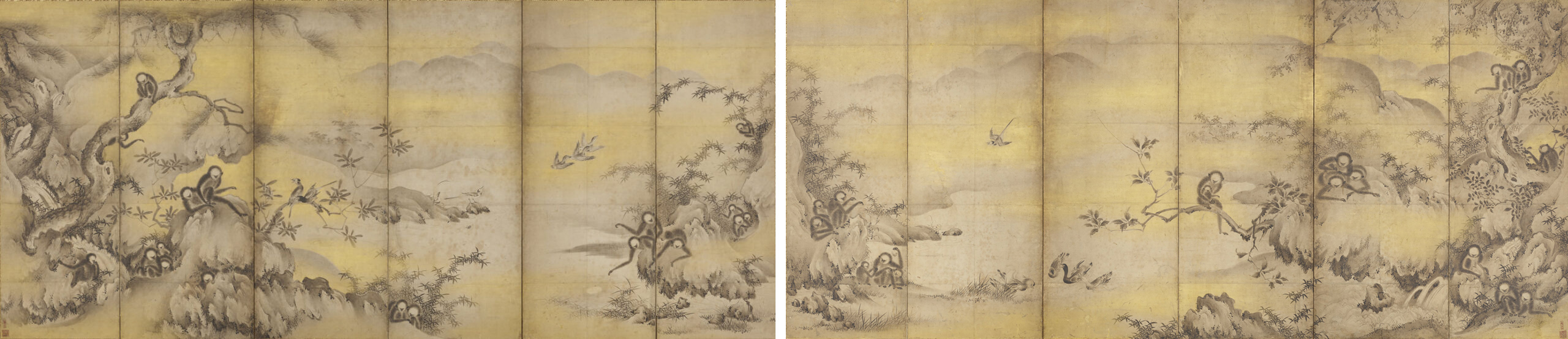 • 重要文化財 式部輝忠《巖樹遊猿図屏風》
