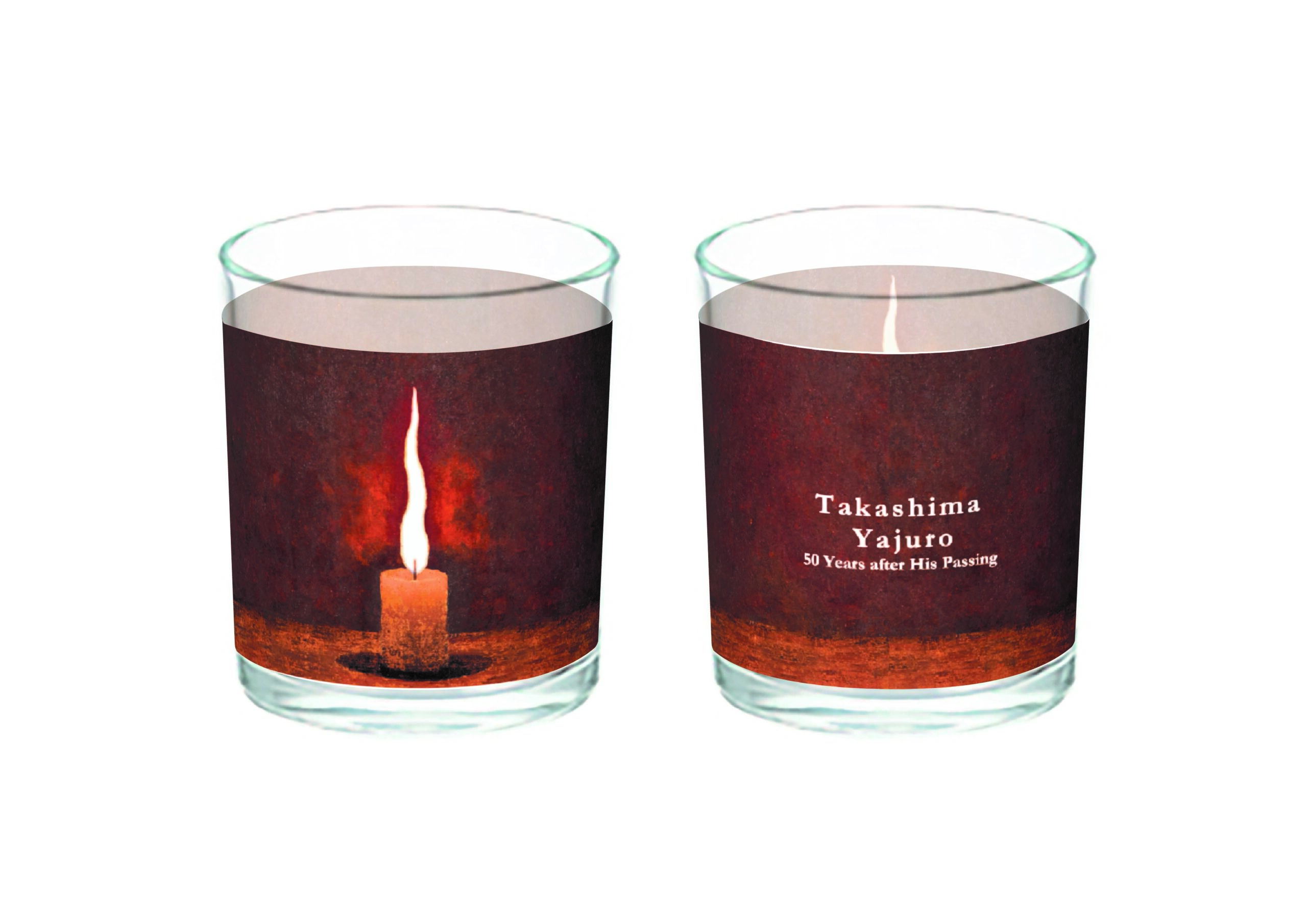 野十郎の代表作である《蝋燭》をプリントした大阪会場限定のガラスコップ1個と観覧券1枚のセット券です。蝋燭の炎と展覧会ロゴの部分は半透明になっていて、注いだ飲みものに合わせて色が変わります。
