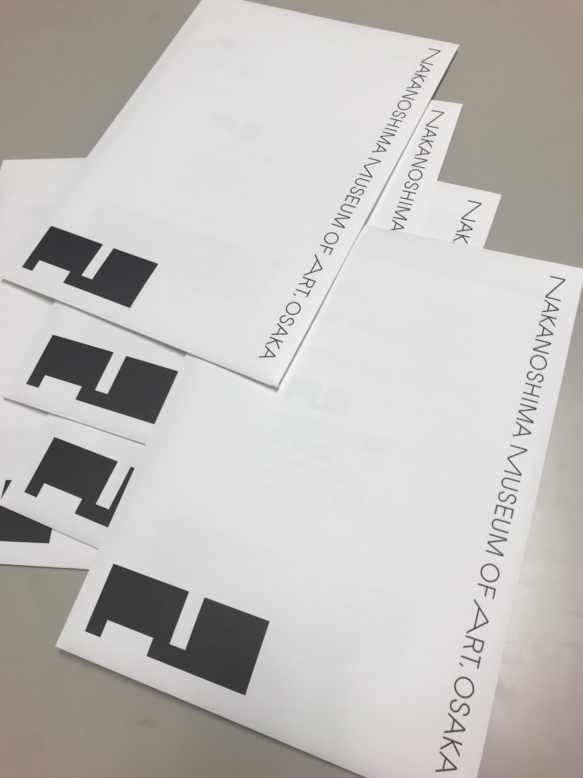 白地に、シンボルマークと美術館名が大きく入った封筒は、シンプルでいて、