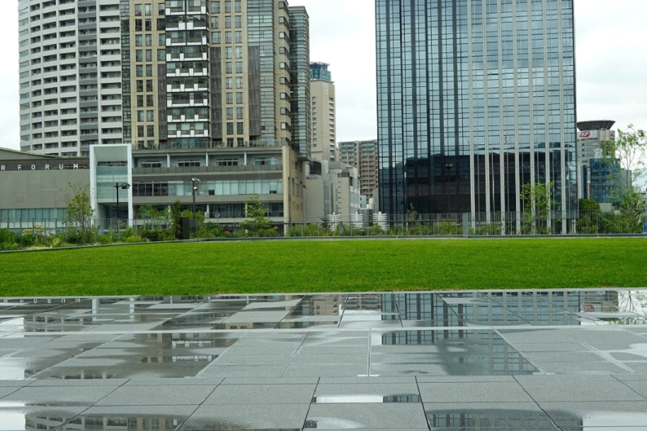菅谷館長は「今日、初めてこの場所に立ちました」と感慨深げ。「設計にあたり、内と外をどうつなぐかを考えた」と遠藤さん。「単に建物を建てるだけでなく、都市との接続をどう実現するかが大事」と話します。2階は窓ごしの景色のみならず、実際に隣の敷地との間にデッキがかかっています。将来的には国立国際美術館ともデッキでつながる予定。館内を抜ける「道」がつながれば、1階と2階は自由に人が行き交う「まちの一部」となります。