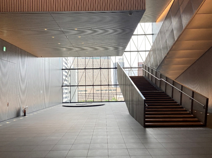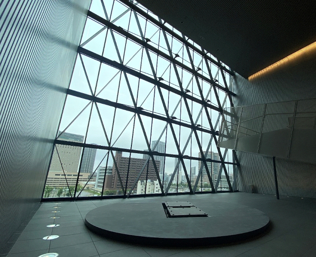 大阪中之島美術館に入った時、まず目を奪われるのは、1階から5階までを貫く吹き抜けでしょう。はるか高い窓から自然光が注ぎ、思わず立ち止まって見上げてしまうほど荘厳な空間が広がります。