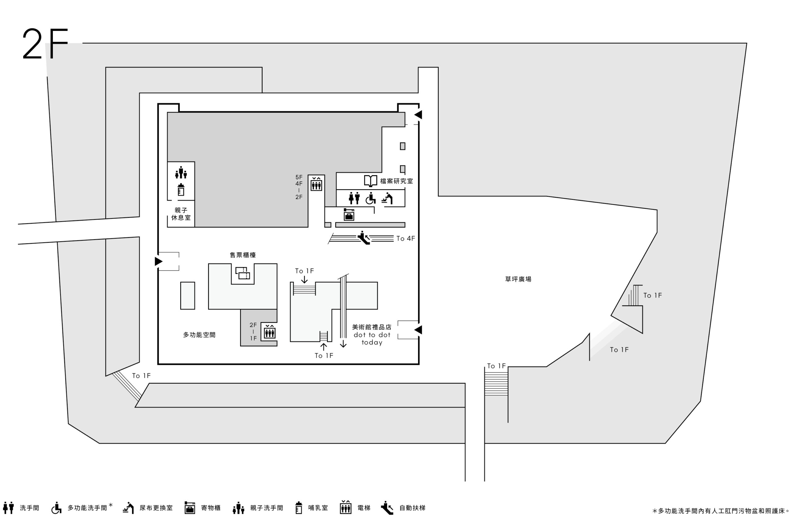 | 2F | 售票台、親子休息室、檔案資料室、草坪廣場(室外) |